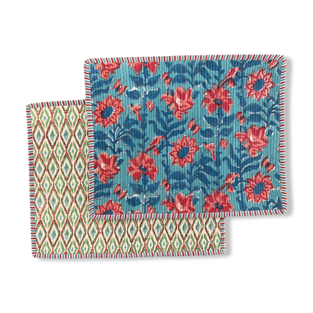 Our Reversible beautifully handcrafted Block printed & quilted placemats will give your table a gorgeous look.
